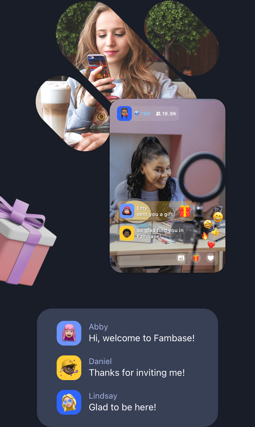Fambase is an all-in-one app allowing you to go live together with the people you like, chat at once, send and receive gifts. Create your own groups, share the content which really matters and enjoy communication in a warm and cozy way.
